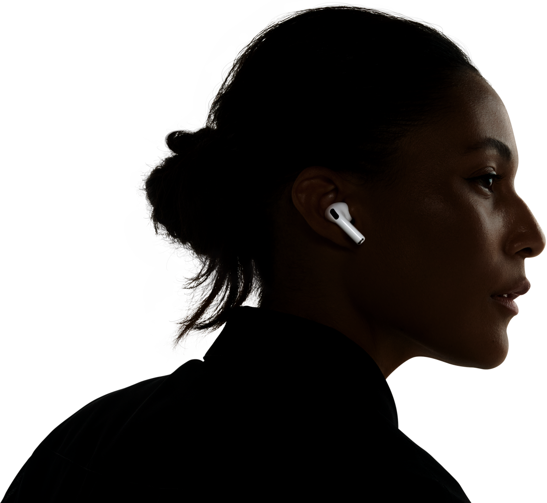 Adaptive EQ tunes music to your ears in real time based on the fit of your AirPods. Inward-facing microphones measure what you’re hearing, then adjust the low to high frequencies of a song — so you get consistently detailed playback, every time.