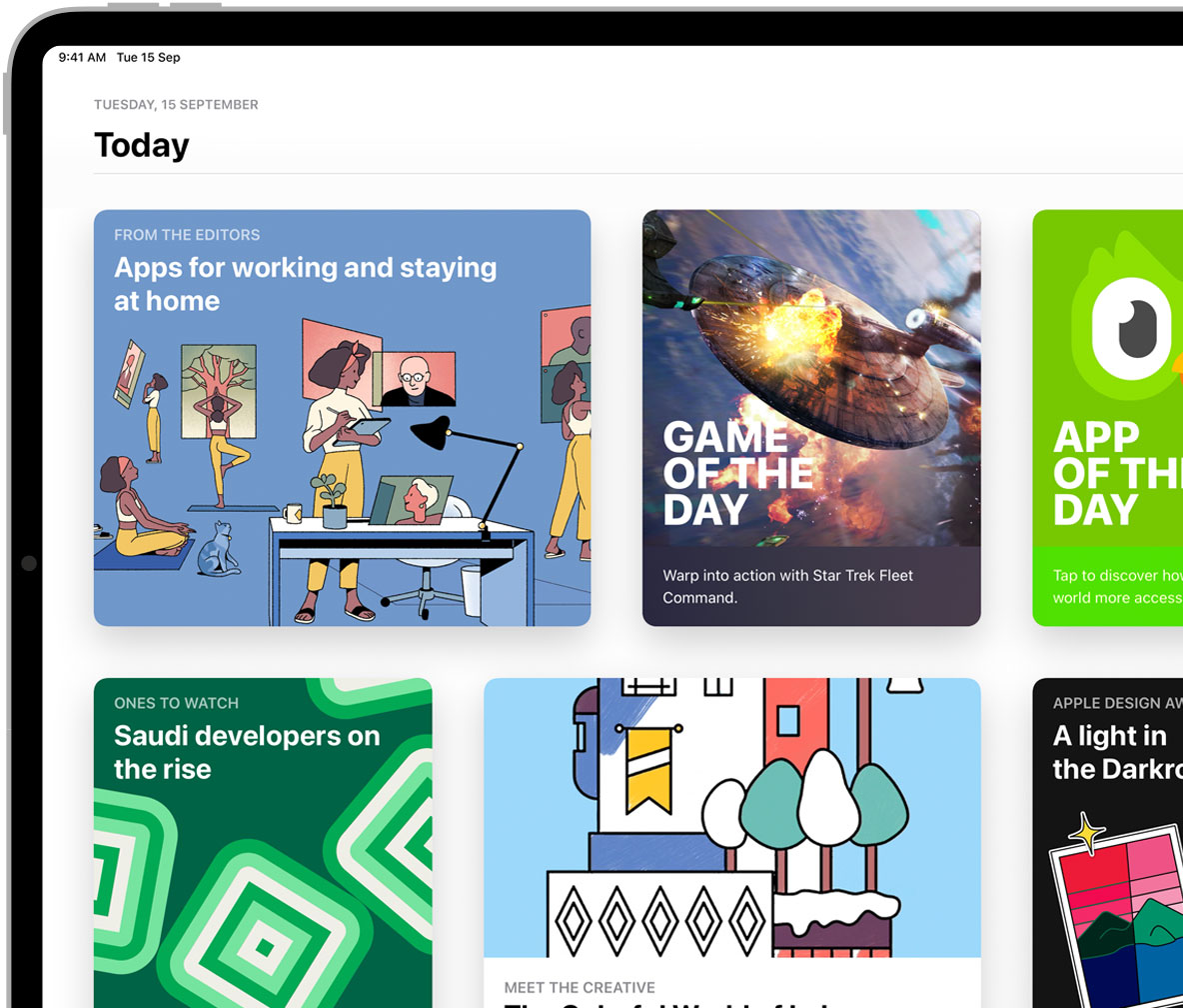 Original stories by our editorial team bring you everything from exclusive world premieres to behind-the-scenes interviews. Tap the Today tab and read about influential developers and game creators, learn a few tips and tricks, or see how apps are changing how people work, play, and live.