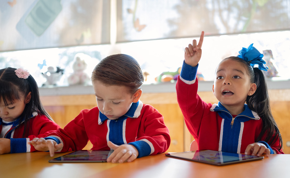 The school’s youngest learners are introduced to iPad with apps like Smile and Learn, which supports learning to read and write. “The little ones are very curious to learn,” says kindergarten teacher Liliana Pescador. “They come in and grab the device, inspect it, and move it around. And we want them to start using these tools from a young age. Those who are beginning to read and write are already writing short sentences on iPad.”