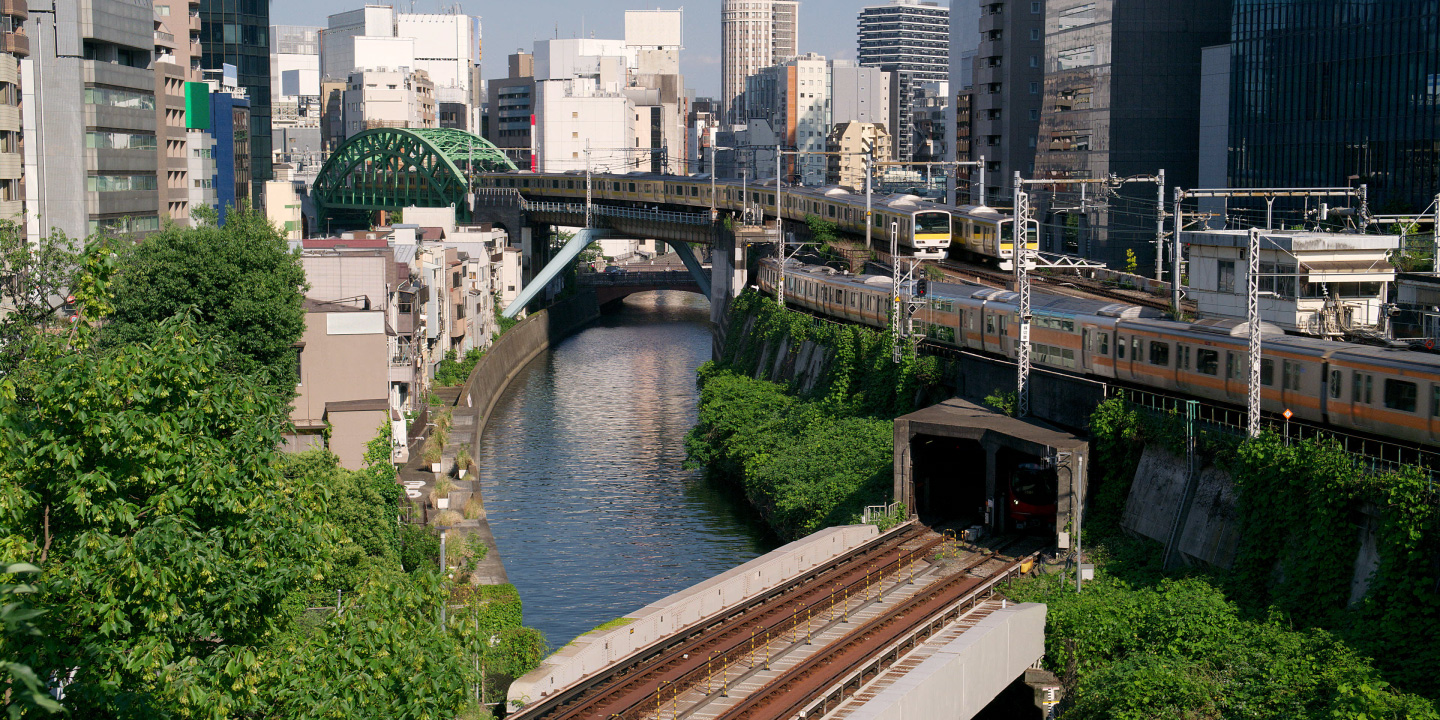 Glimpses of Tokyo Metro, including trains crossing bridges, daily operations, and maintenance work.