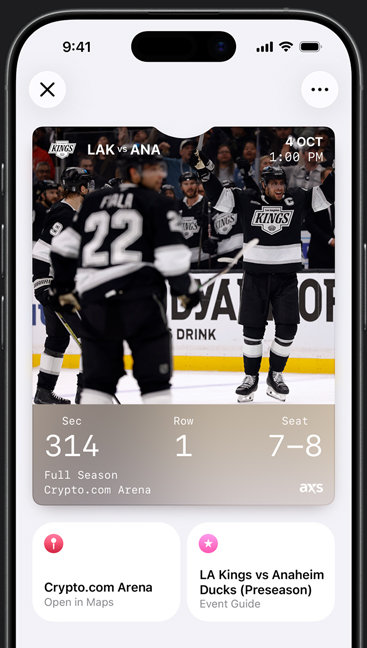 The Wallet app lives right on your iPhone. It’s where you securely keep your boarding passes, event tickets and more — all in one place. And it all works with iPhone or Apple Watch, so you can take less with you but always bring more.
