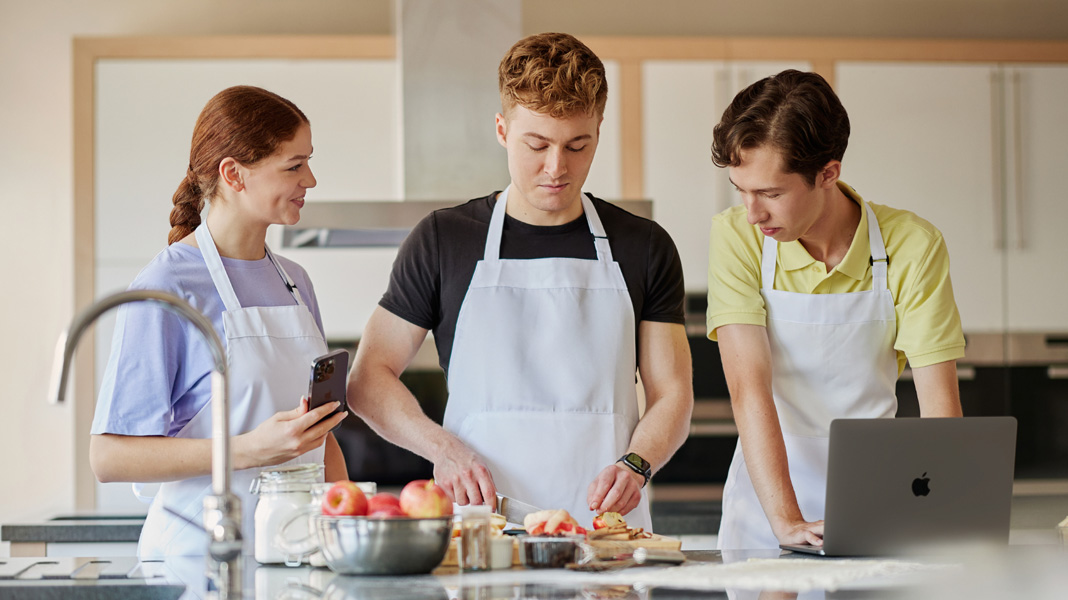 Dos semanas después, desarrolló el primer prototipo de “Just Cook” en Xcode, una versátil app de recetas y cocina que incluye un asistente de inteligencia artificial y por la cual ganó un premio universitario. “A los profesores les sorprende la velocidad a la que puedo desarrollar un prototipo con Swift. Es un cambio enorme”, señala. Alexander y su equipo de estudiantes siguen mejorando la app y recientemente crearon una versión beta para visionOS. Disfrutan usar Freeform y Mensajes para colaborar, comunicarse y conceptualizar como una verdadera startup.