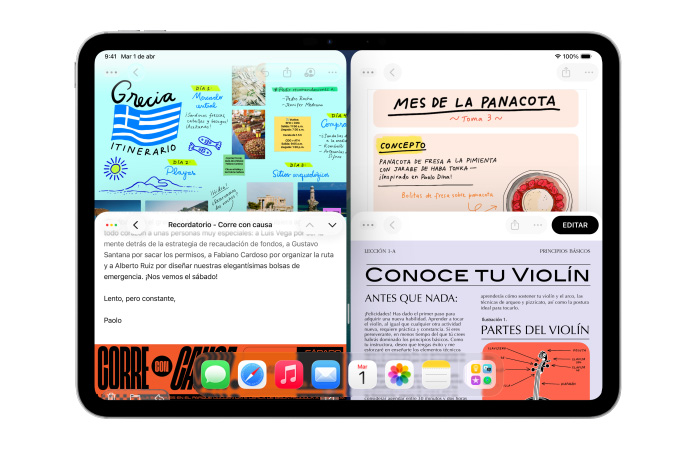 Ordena tus ventanas moviéndolas hacia el borde izquierdo o derecho. Además, ahora también puedes dividir la pantalla del iPad en tercios o cuartos.