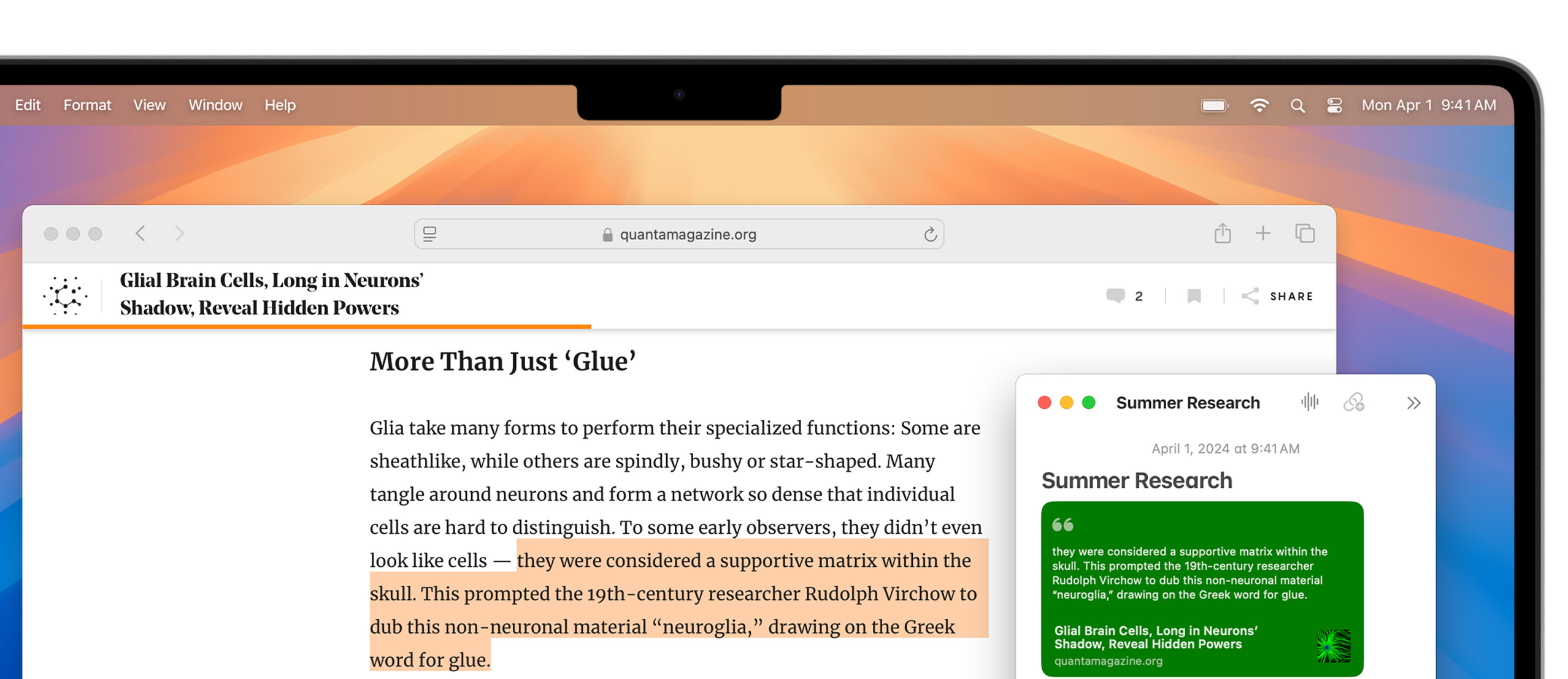 Notes is your go-to app to capture any thought. And with the Quick Note feature, you can instantly jot down ideas as you browse websites without having to leave Safari.