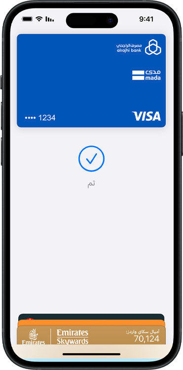ما عليك سوى تقريب iPhone أو Apple Watch من قارئ البطاقة لتنطلق على السريع.