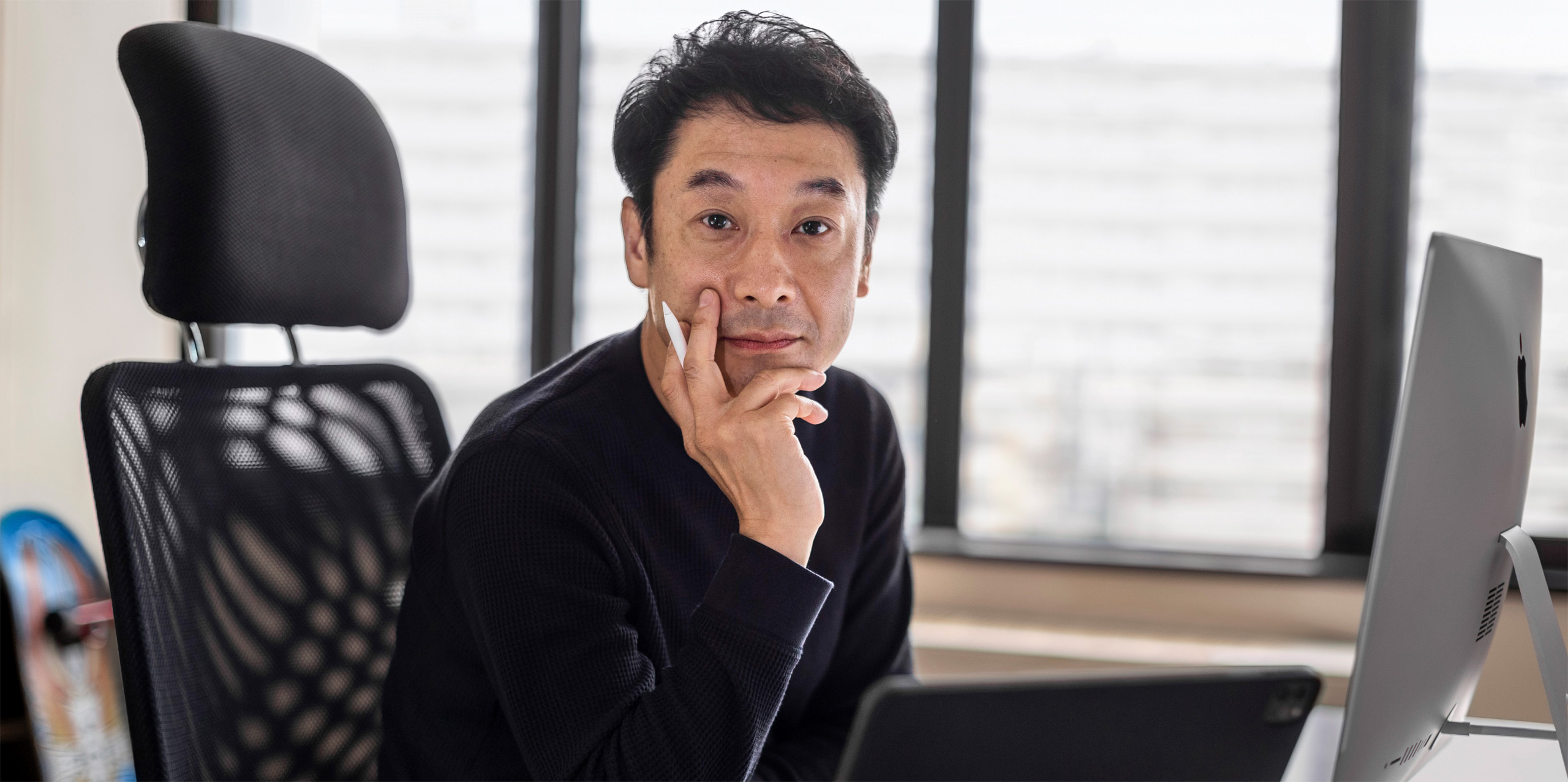 iPad Pro Dr. Iimura และนักศึกษาของเขาใช้ iPad, Apple Pencil และ Adobe Illustrator เพื่อสเก็ตช์ภาพและสร้างสตอรี่บอร์ดสำหรับไอเดียแอปการช่วยการเข้าถึงที่จะช่วยให้ครูผู้สอนสื่อสารกับนักเรียนที่ไม่สามารถสื่อสารผ่านคำพูดได้