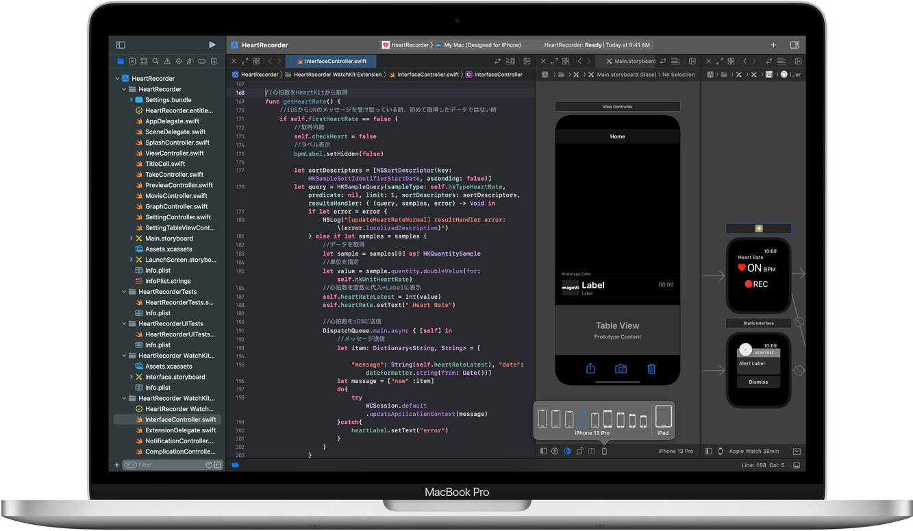 MacBook Pro Xcode และ Swift บน Mac พร้อม HealthKit ช่วยให้พวกเขาสร้างโซลูชั่นหนึ่งได้สำเร็จ นั่นคือแอป iOS และแอป watchOS ที่ทำงานร่วมกันเพื่อตรวจจับและบันทึกอัตราการเต้นของหัวใจของนักเรียนและปฏิกิริยาทางร่างกายแบบเรียลไทม์ในระหว่างการทำกิจกรรม