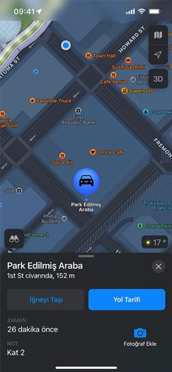 Harita’da hızla ve kolayca tam aradığınız şeyi bulabiliyorsunuz. Mutfak türüne, fiyat aralığına ve paket servisi sunup sunmadıklarına göre restoran aramak için hedef odaklı filtreleri kullanabiliyorsunuz. Veya yalnızca o an açık olan yerleri görmeyi seçebiliyorsunuz. Aramanızı genişletmek mi istiyorsunuz? Haritada yer değiştirmeniz yeterli. Arama sonuçlarınız otomatik olarak güncelleniyor. Eve daha yakın bir yer mi arıyorsunuz? Restoranlar, Benzin İstasyonları, Kafeler, Oteller, Barlar, Fast Food, Market ve Alışveriş Merkezleri gibi kategorilerde yerel mekanları bulmak için Yakında Bul’a dokunun. Aradığınızı bulmanızı daha da kolaylaştırmak için konumlar haritada renkli rozetlerle gösteriliyor.