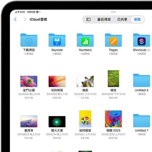 iCloud 雲碟可讓你無論在何種裝置上,都能輕鬆取用並共享你所儲存的檔案與檔案夾。你可以透過 iOS 與 iPadOS 上的「檔案」app、Mac 上的 Finder、Windows PC 上的檔案總管或 iCloud.com 取用所有內容。